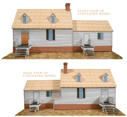 Kit includes house model and base. Building measures approximately 8 inches long by 5 inches deep by 4 inches high. Four sheets plus illustrated instructions, $6.95 plus shipping. Available directly from the Park Visitor Center, at 804-371-2595 or 6541 Saylers Creek Road, Rice, VA 23966.