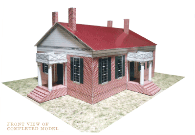 This kit includes court house model and base. Building measures approximately 8 inches wide by 10 inches deep by 6 inches high. Four sheets plus illustrated instructions, $8.95 plus shipping. Available directly from the Farmville-Prince Edward Historical Society at www.fpehs.org.